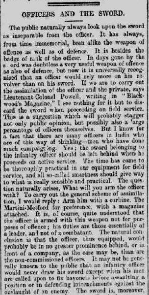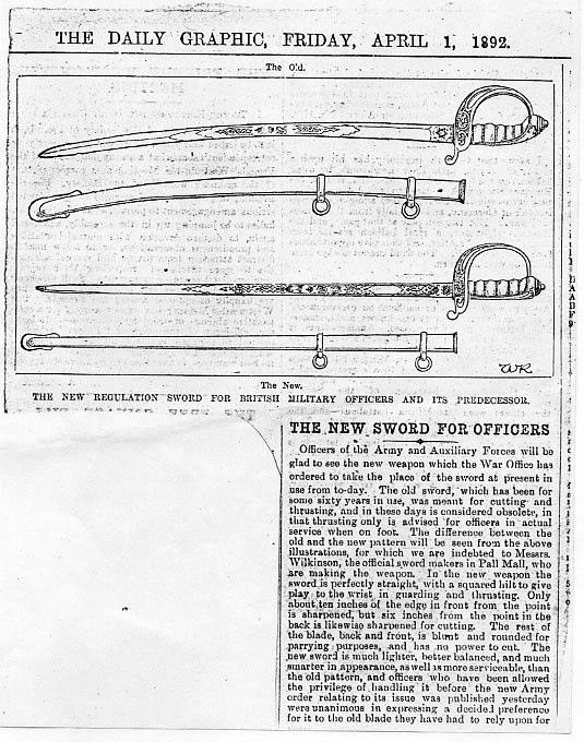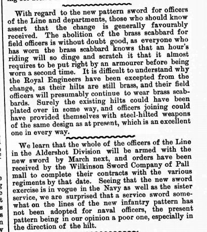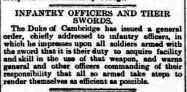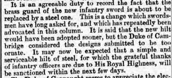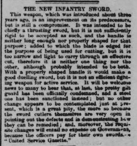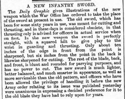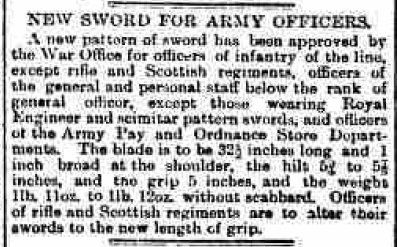 The Edinburgh Evening News of 7 Jan 1896 was typical of many newspapers around this time in reporting the new infantry officers' sword, now with the updated steel hilt: