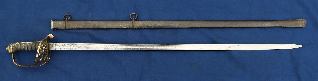A frequent hybrid to encounter today is an earlier 1845 pattern blade which has received an updated 1895 or 1897 pattern hilt. Because many Army officers had been commissioned before 1892, but were still in the Army in 1895, it seems that a lot of them chose to update the hilts of their swords and keep their old blades, rather than buying completely new swords in 1892, 1895 or 1897. Some of these officers were undoubtedly aiming to save some money, while others presumably preferred the old cut and thrust blades, or were attached to them for personal reasons.