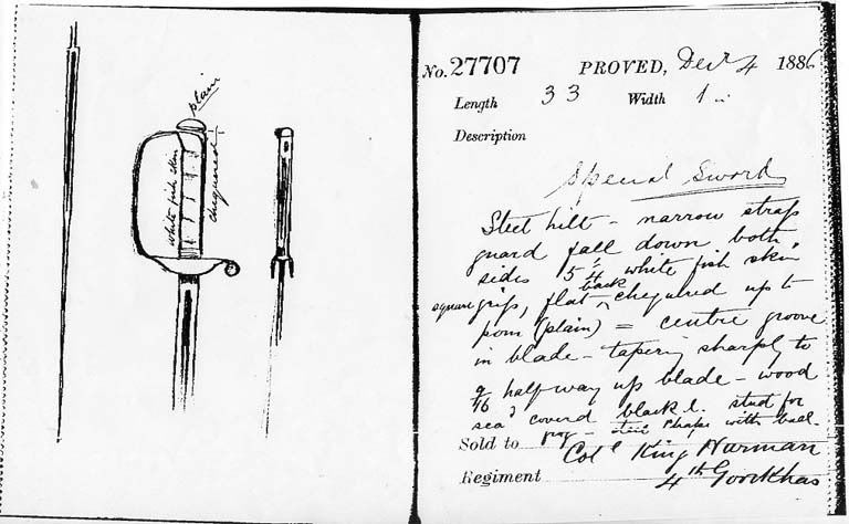 Despite the widespread perception and even claim by Colonel King-Harman that his own sword design was the inspiration for the 1892 regulation blade, the records of the Wilkinson Sword Company do not really support this. In fact the original drawings and description of the sword survive, as well as a crude photograph of the counterpart kept by John Latham. These have been shared by Robert Wilkinson-Latham, a descendent of John Latham and are reproduced here - full credit and thanks to Robert Wilkinson-Latham who gave me permission to share them: