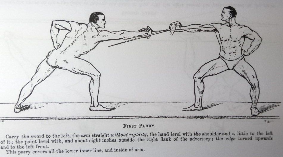 One of Hutton and Matthey's biggest criticisms of the Italian schools in application to British military swordsmanship was their focus on lighter fencing gymnasium swords than the regulation British military sword and techniques which were more appropriate to the duel than the battlefield.
