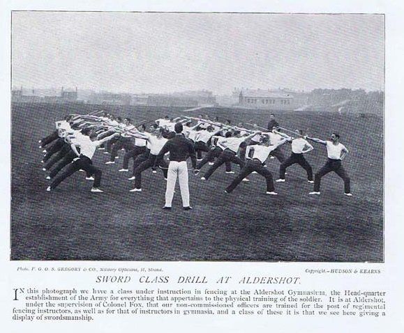 Training in the new 1895 Infantry Sword Exercise underway at the Aldershot barracks in 1896, as featured in the Army and Navy Illustrated: