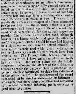 The Belfast News-Letter of 28 Dec 1899 sums up the prevailing attitude to infantry officers' swords by the end of the 19th century:
