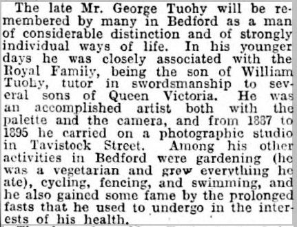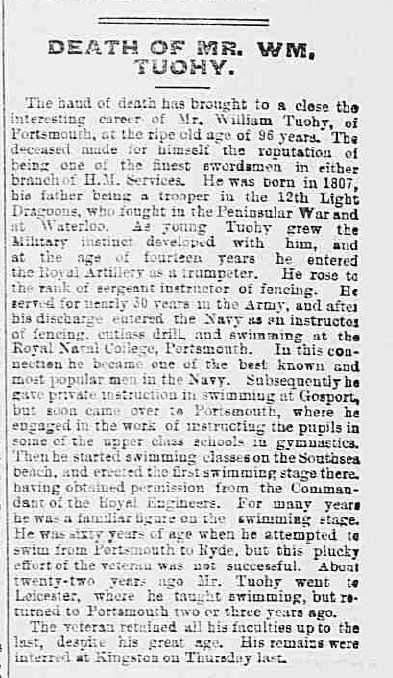 This obituary sums up many interesting details of Tuohy's life, from the Portsmouth Evening News - Monday 03 March 1902: